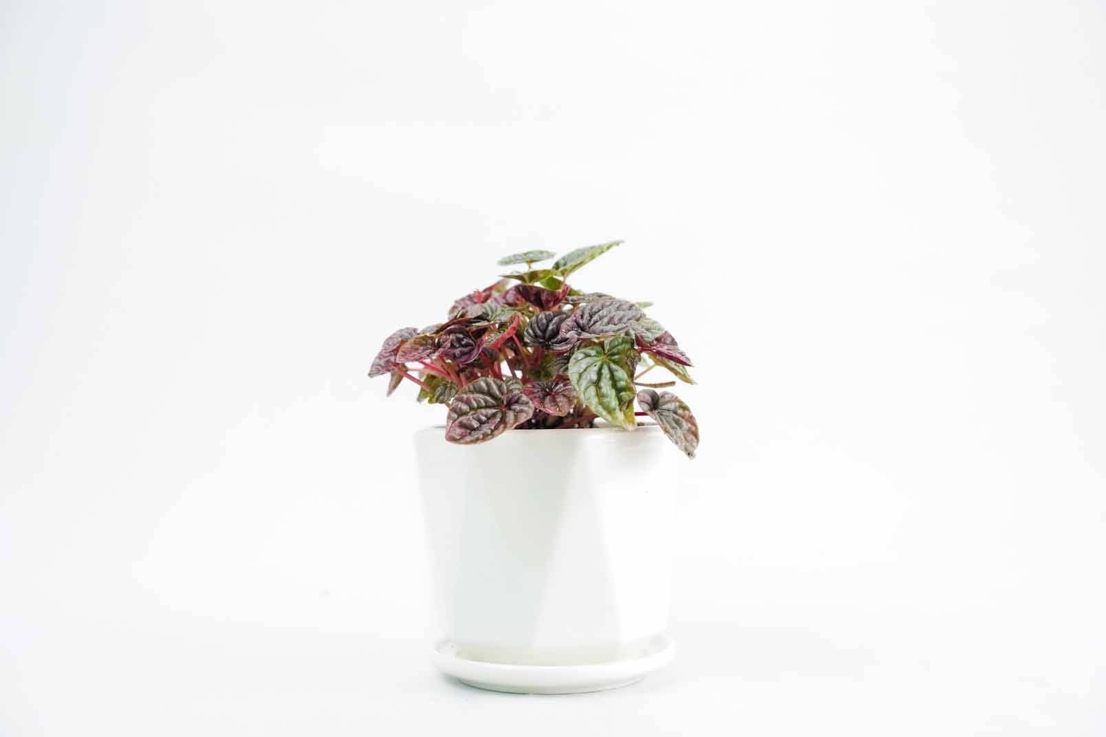Peperomia Caperata “Luna Red” is a very attractive houseplant with purple-red heart shapes leaves that has ripple texture. Water them very low like succulents with a good ventilated shady area will keep them happy.