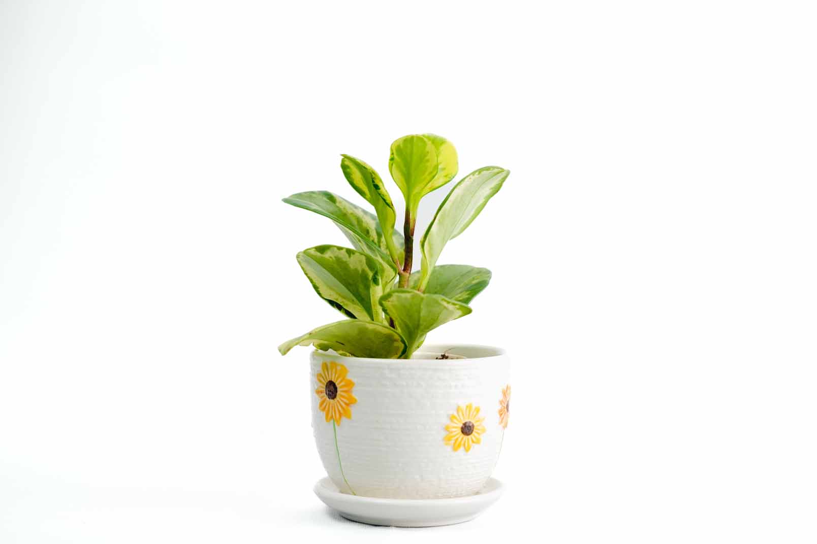 The Peperomia Obtusifolia Variegata is a stunning variegated plant with heart-shaped leaves that feature shades of green and creamy white. This tropical plant thrives in bright, indirect light and requires minimal care, making it perfect for indoor spaces. With its compact size and bushy growth habit, it adds a touch of elegance to any room or office. The Peperomia Obtusifolia Variegata is an ideal choice for plant enthusiasts of all levels.